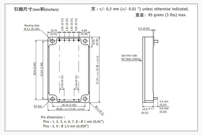 引脚尺寸与定义 > DIMENSIONS AND PIN-OUT